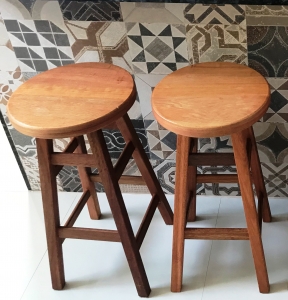Banqueta Alta em Madeira Maciça com tampo Redondo.