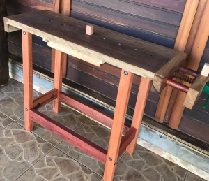 Bancada para marceneiro hobby, travada, com 1 morsa. Sendo 1 frontal (no tampo) e gaveta opcional.